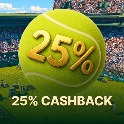 Аплодисменты спортивных болельщиков – на корте кешбэк 25%! Делайте ставки на матчи Уимблдонского турнира, наслаждайтесь теннисом, а мы вернем до 25% от отрицательного баланса по результатам всех одиночных ставок на турнир.