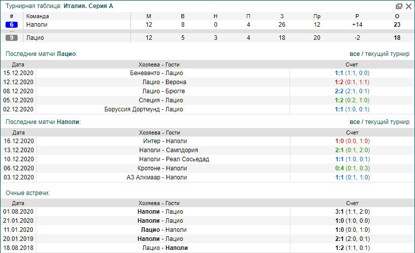 | Точный прогноз на матч Лацио — Наполи