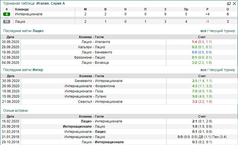 «Орлята» пережили смешанный старт в новой кампании Серии А. За выездной победой над «Кальяри» последовало сокрушительное домашнее поражение от «Аталанты». В матче с «Интером» римляне будут изо всех сил пытаться реабилитироваться. С психологической точки зрения трудно сказать, способны ли парни Симоне Индзаги моментально отреагировать на крупное поражение. Кроме того, у «Лацио» травмирована целая группа основных футболистов. Это Сенад Лулич, Луис Фелипе, Хоакин Корреа и Штефан Раду.