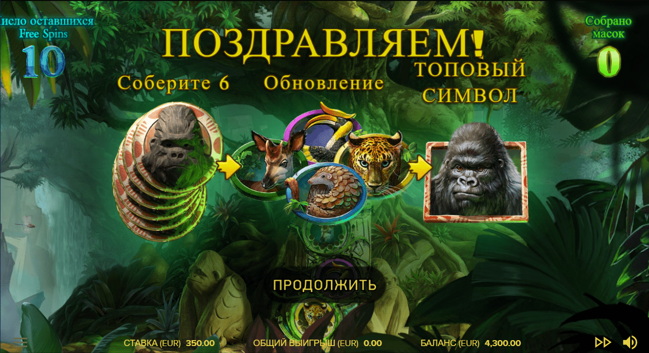 Одной из примечательных особенностей игры является тотемный камень, находящийся справа от барабанов. В него встроены 4 панели, на которых изображены символы леопарда, птицы-носорога, окапи и панголина. Каждое животное имеет 6 слотов, которые заполняются во время фриспинов по мере выпадания Маски Гориллы. Когда Маска Гориллы заполнит все шесть слотов панели, символ животного, изображенного на этой панели, преобразуется в символ гориллы на барабанах. В результате, перед Вами откроются огромные возможности для крупных выигрышей. Помимо этого, Вы получите 2 дополнительных фриспина за заполнение каждой панели. Если заполнить все 24 слота тотемного камня, то все символы животных превратятся в символ гориллы. Это в разы увеличит шансы на мегазанос! Вдобавок, когда два или более символа Scatter выпадают на барабанах во время фриспинов, Вы получите дополнительные фриспины.