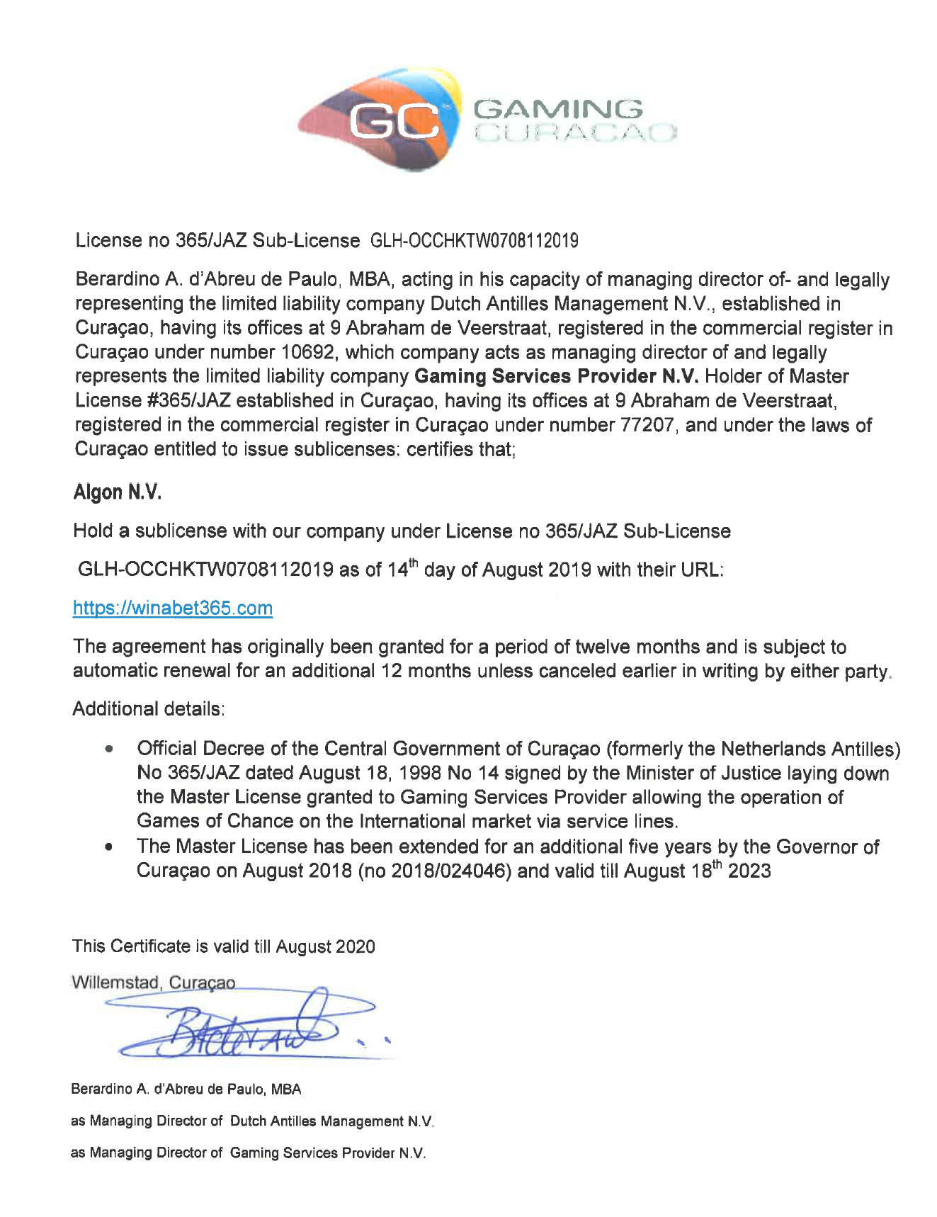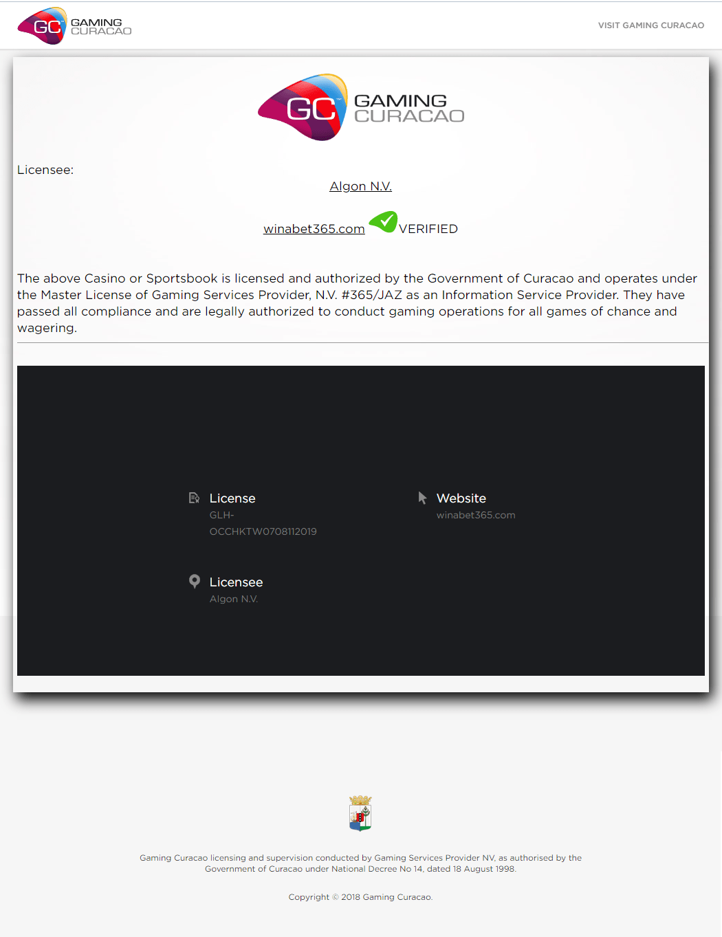 Gaming Services Provider N.V.* (коммерческое обозначение — Gaming Curacao). Номер лицензии 365/JAZ. Официальный сайт — http://www.gaming-curacao.com