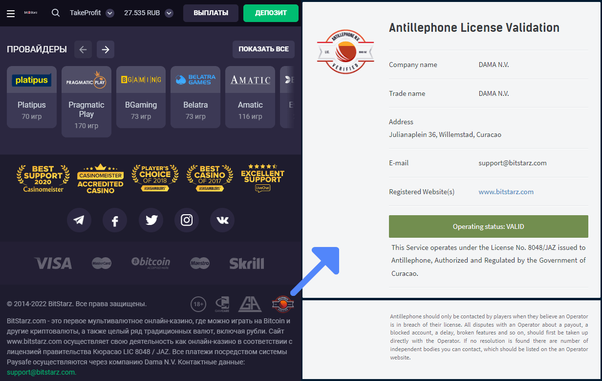 Curaçao Interactive Licensing N.V.* (C.I.L.). Номер лицензии 5536/JAZ. E-mail: info@curacaolicensing.com