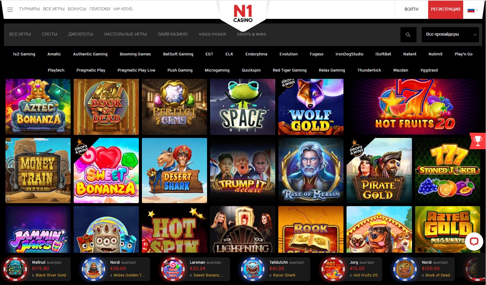 Поскольку N1 Casino сотрудничает с ведущими провайдерами игрового контента, здесь Вы всегда найдёте самые популярные наименования онлайн слотов: Casanova, Immortal Romance, Playboy, Dead or Alive, Space Wars и многие другие.