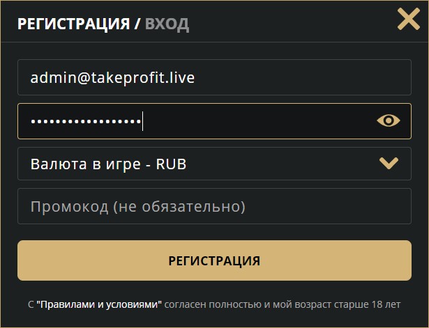 Чтобы создать аккаунт, нажмите кнопку «Регистрация» из верхней панели и заполните мини-анкету. Укажите E-mail, придумайте пароль и выберете одну из пяти валют игрового счета. Далее необходимо заполнить персональные данные: