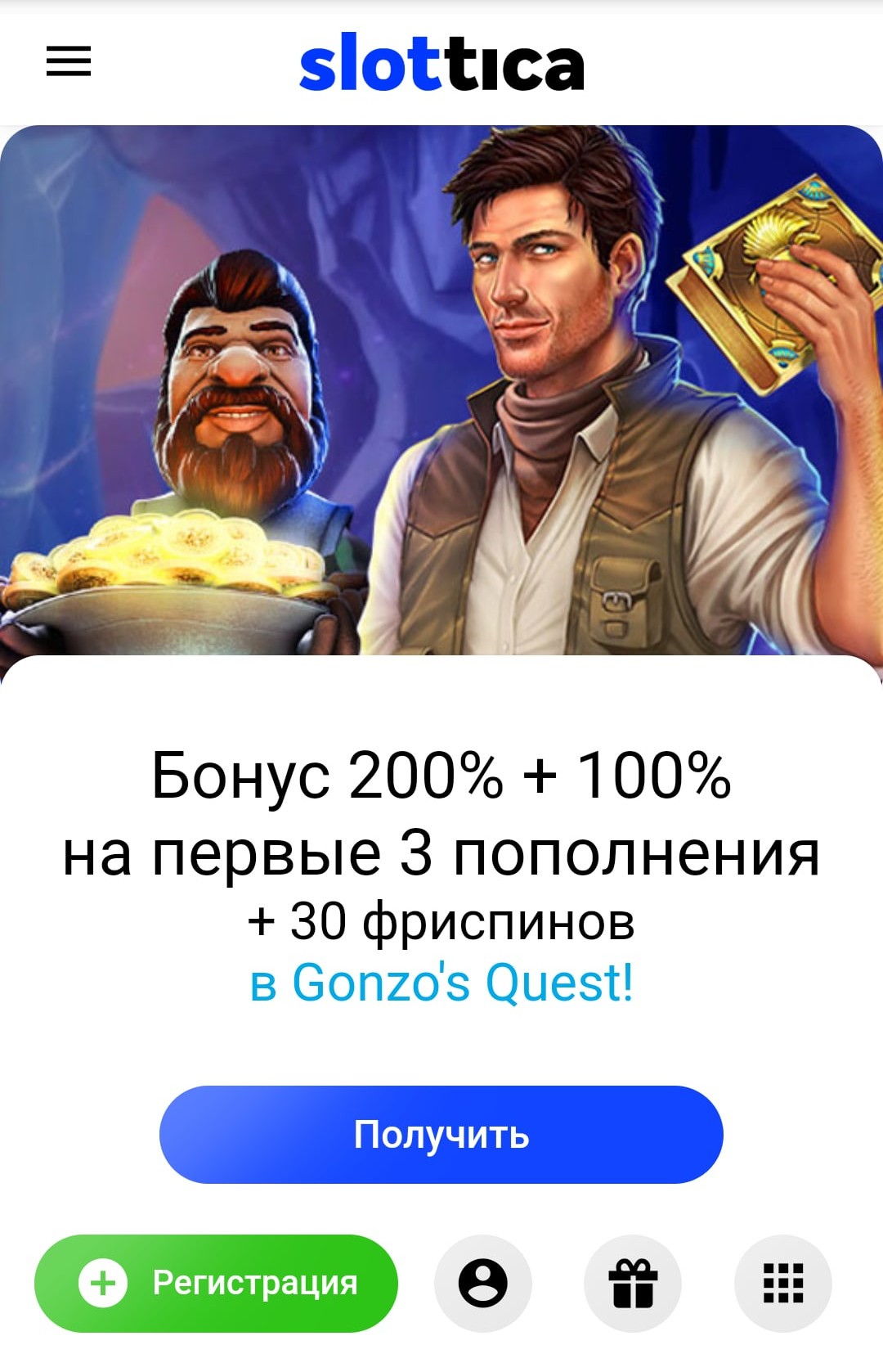 Онлайн казино Slottica привлекает игроков со всего мира не только огромной коллекцией азартных развлечений, но и эксклюзивными бонусными предложениями. После регистрации на сайте Вы сможете активировать: