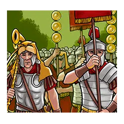 Что касается символики, то она не претерпела изменений. В частности, Вас ожидают офицеры римского легиона, которые «охраняют» здесь барабаны, печально известные римские солдаты и даже портрет самого Цезаря, формирующего комбинации, которые оплачиваются наиболее щедро. Также есть Золотой венок, который идеально сочетается с темой и представляет собой символ бесплатных вращений. Роль универсального символа WILD играет Золотой Орёл. Он дополняет выигрышные комбинации, заменяя отсутствующие в них элементы, но не имеет собственных призовых коэффициентов.